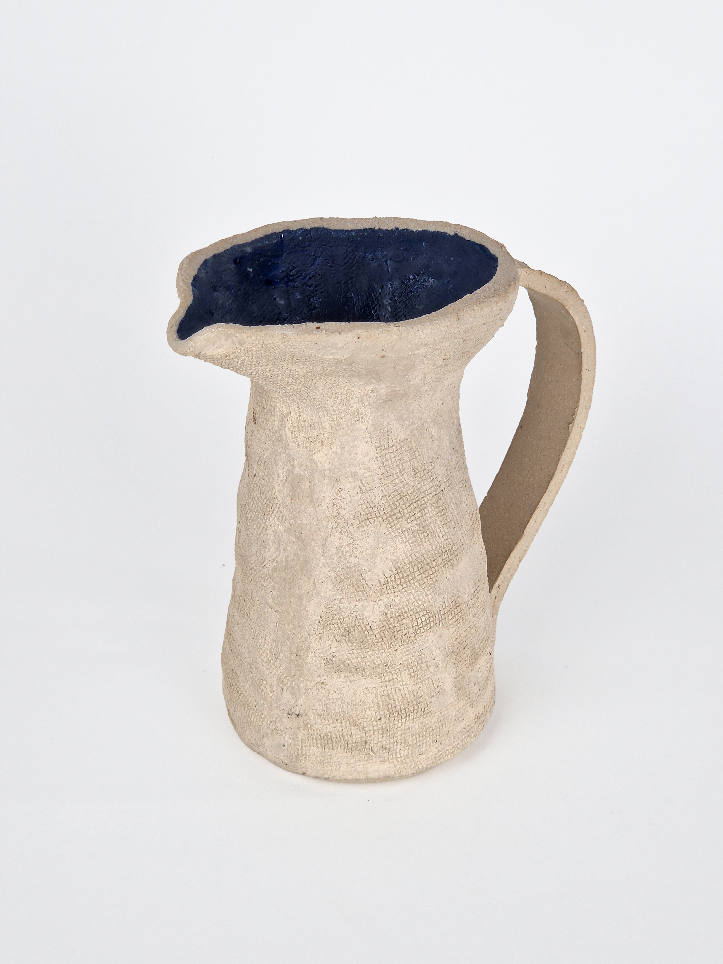 Caraffa modellata a mano in grés porcellanato.