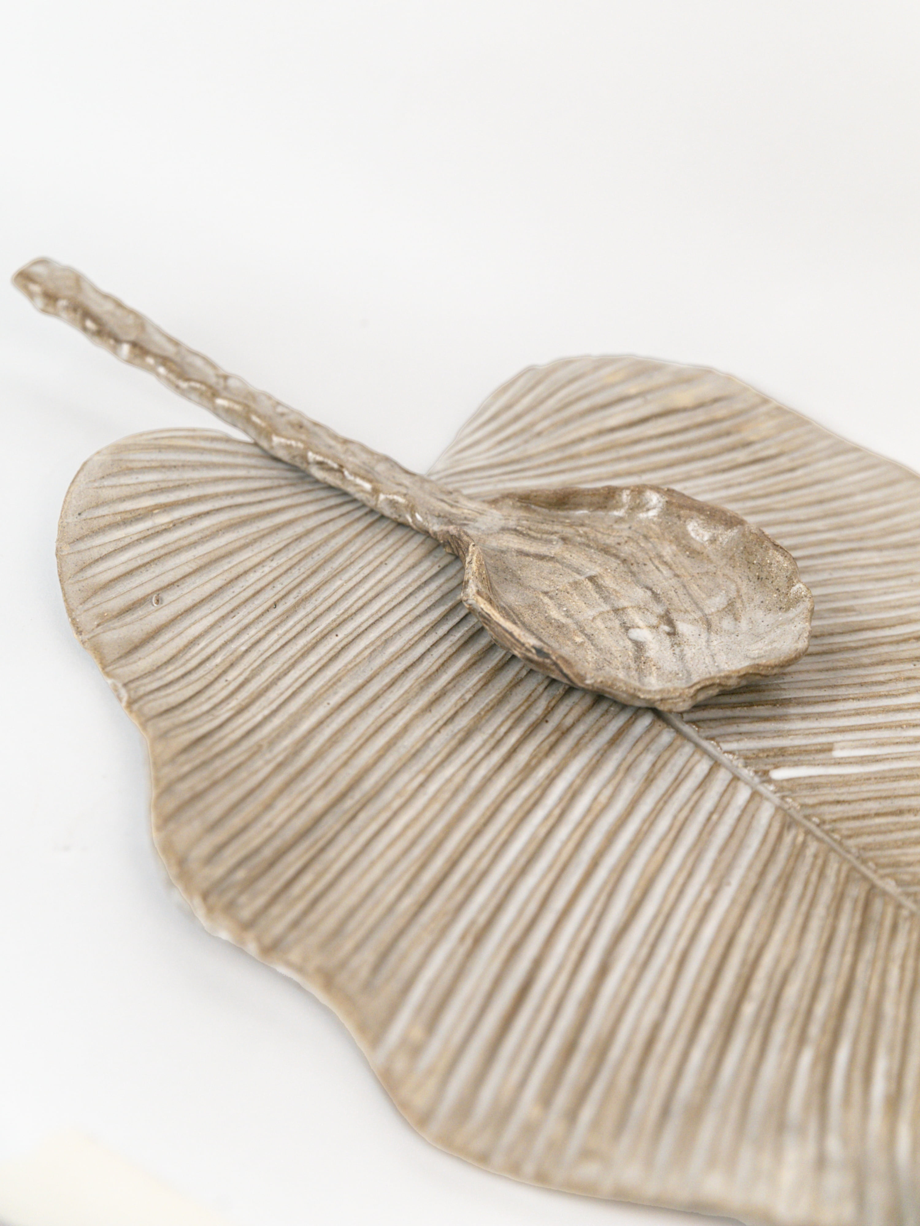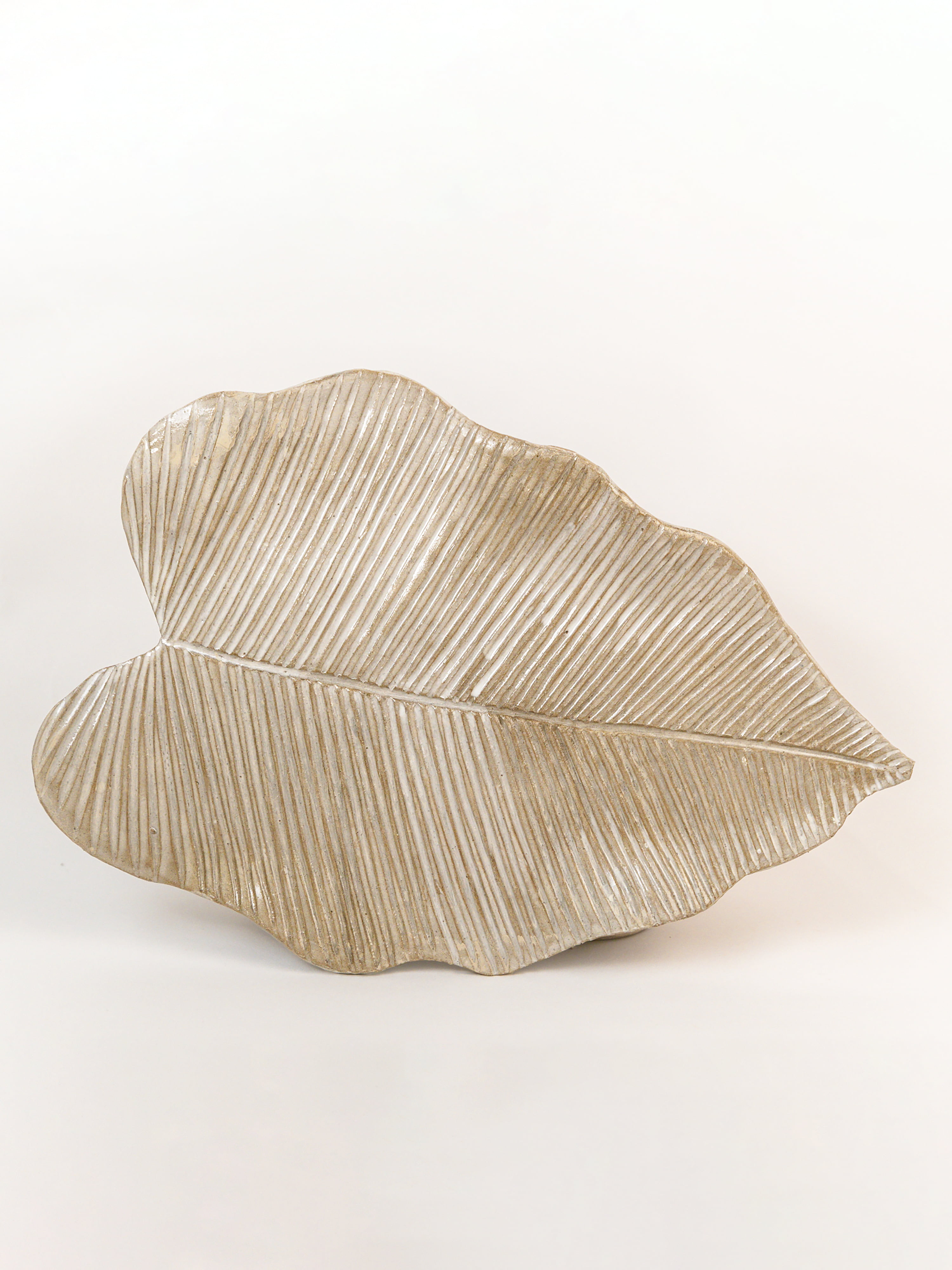 foglia modellata a mano in grés porcellanato marmorizzato.