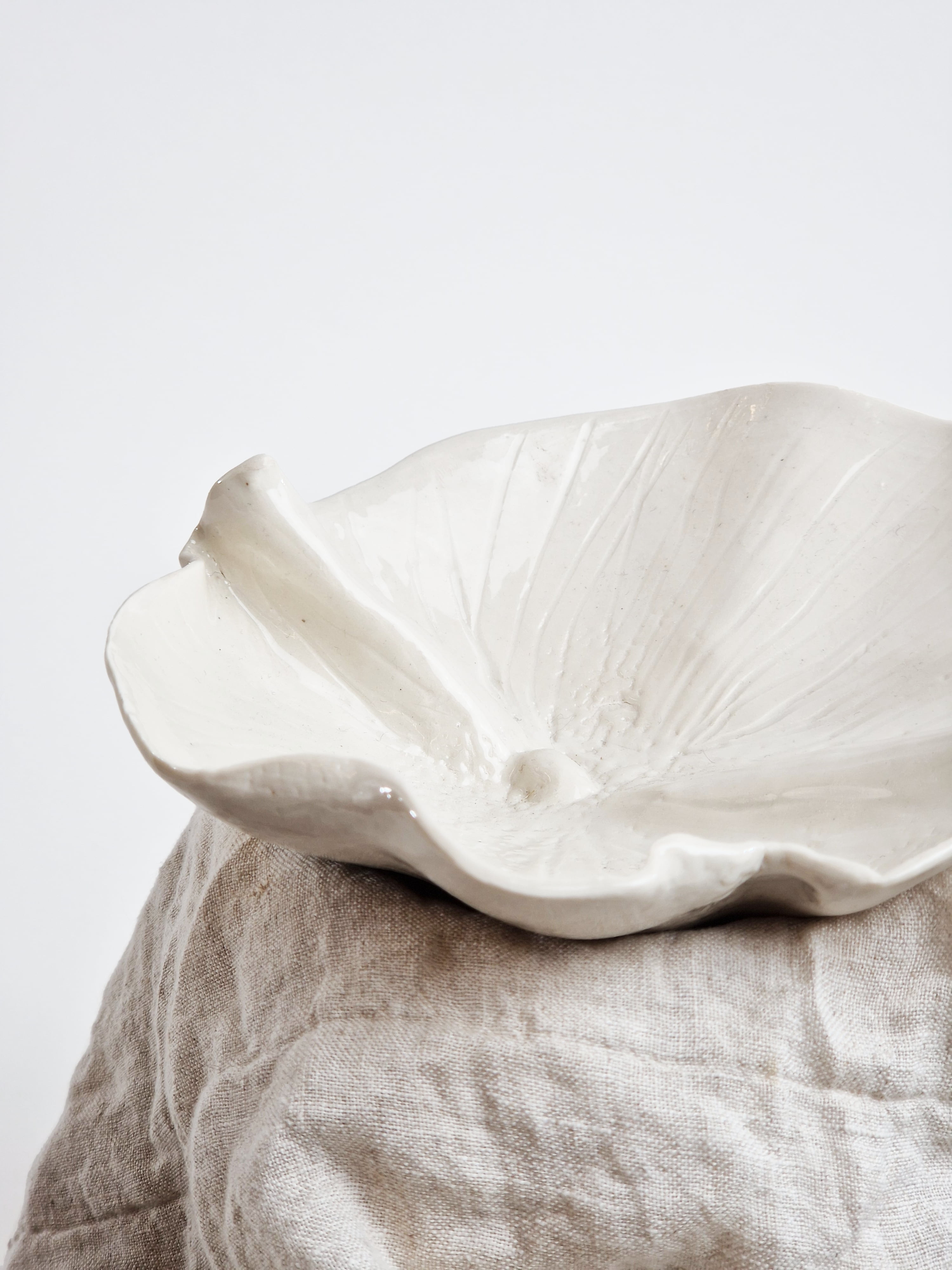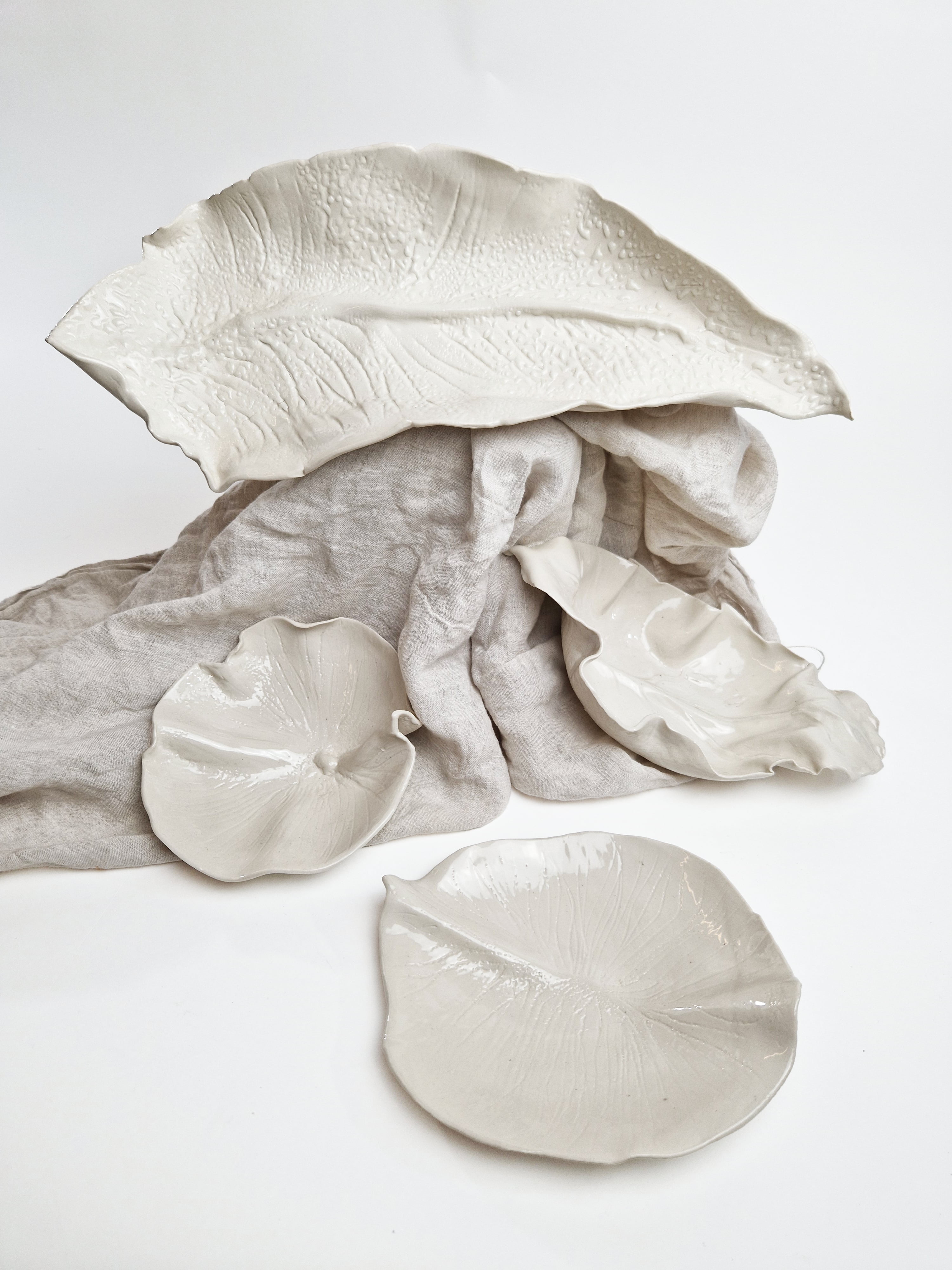 n.4 Foglie in porcellana modellate a mano.