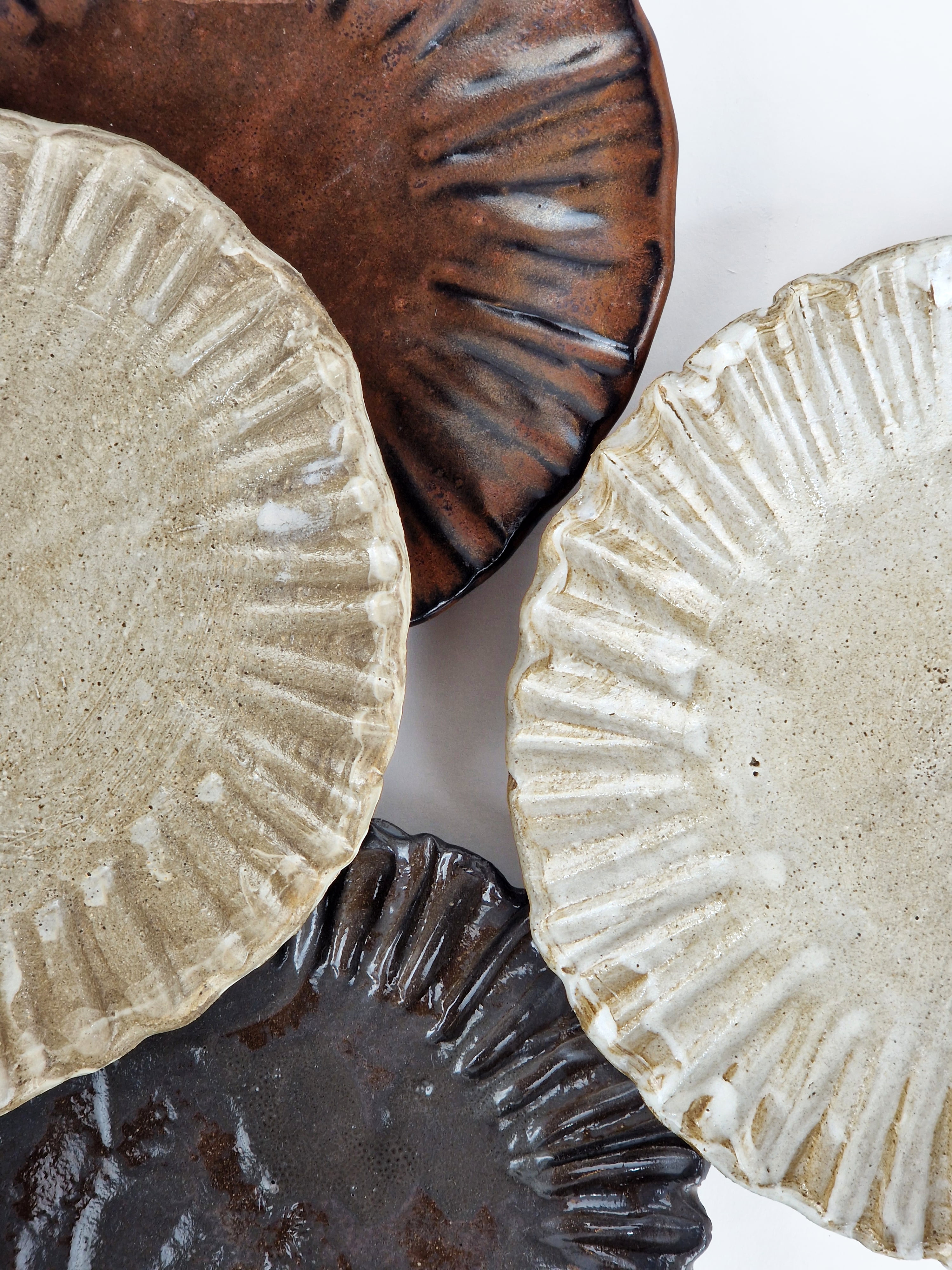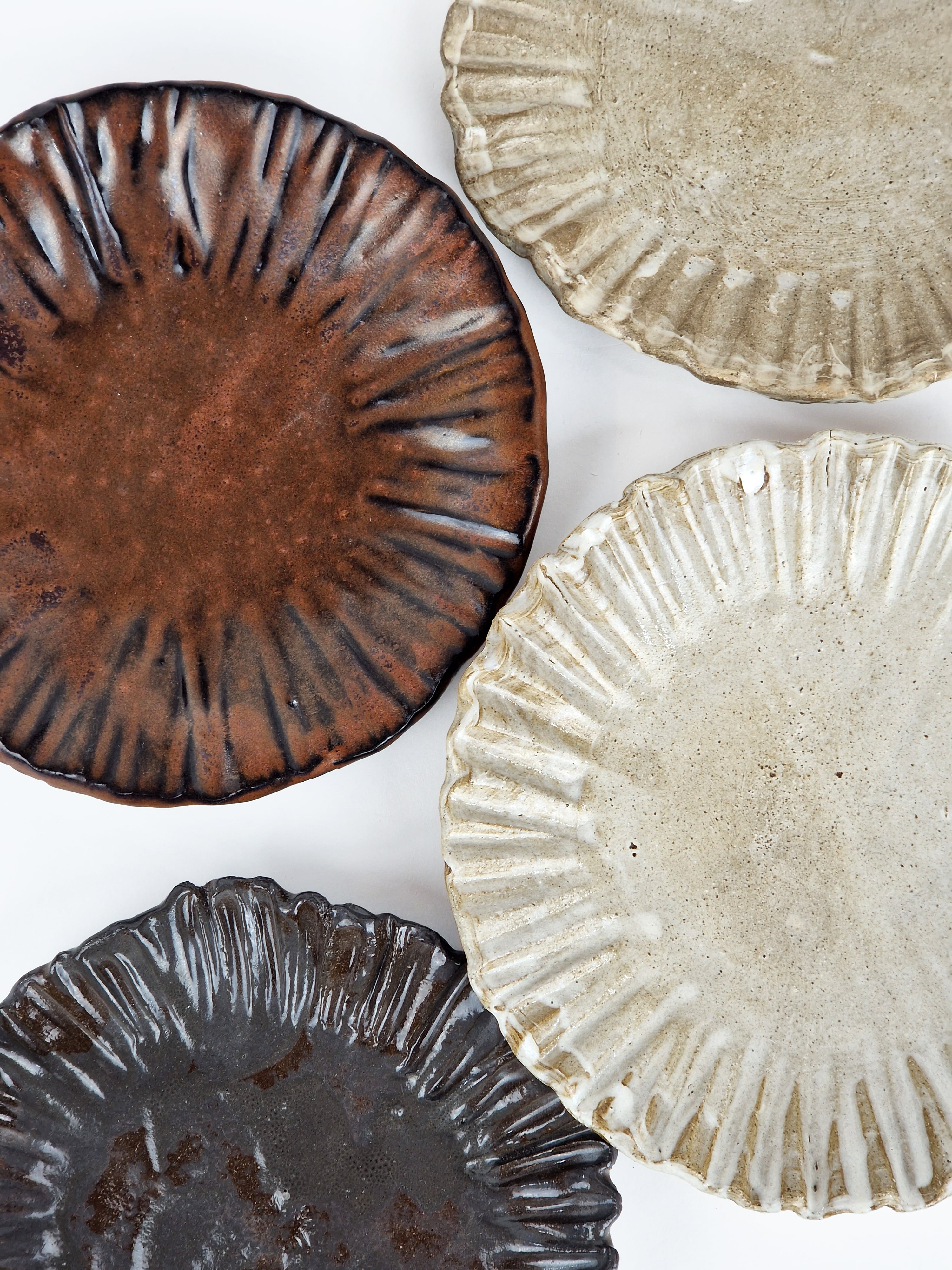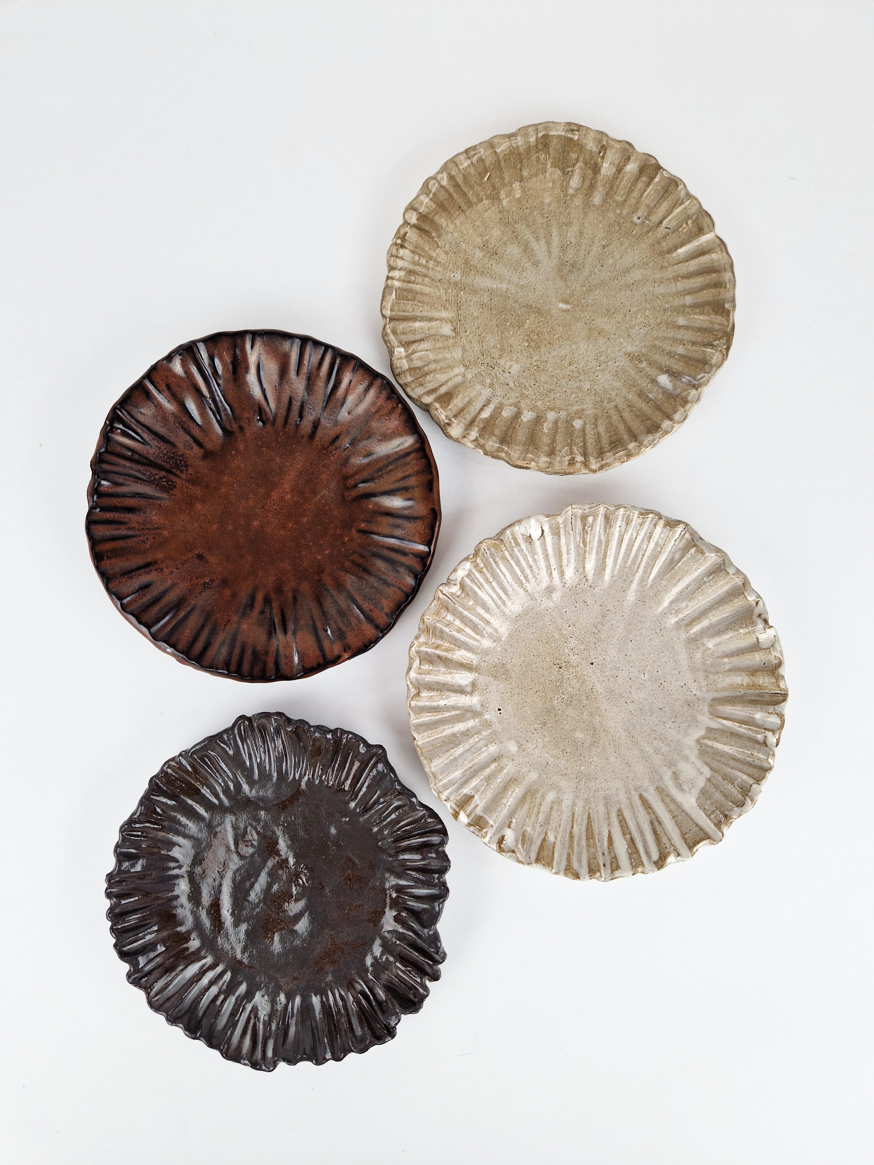n.4 Piatti modellati a mano in grés porcellanato.
