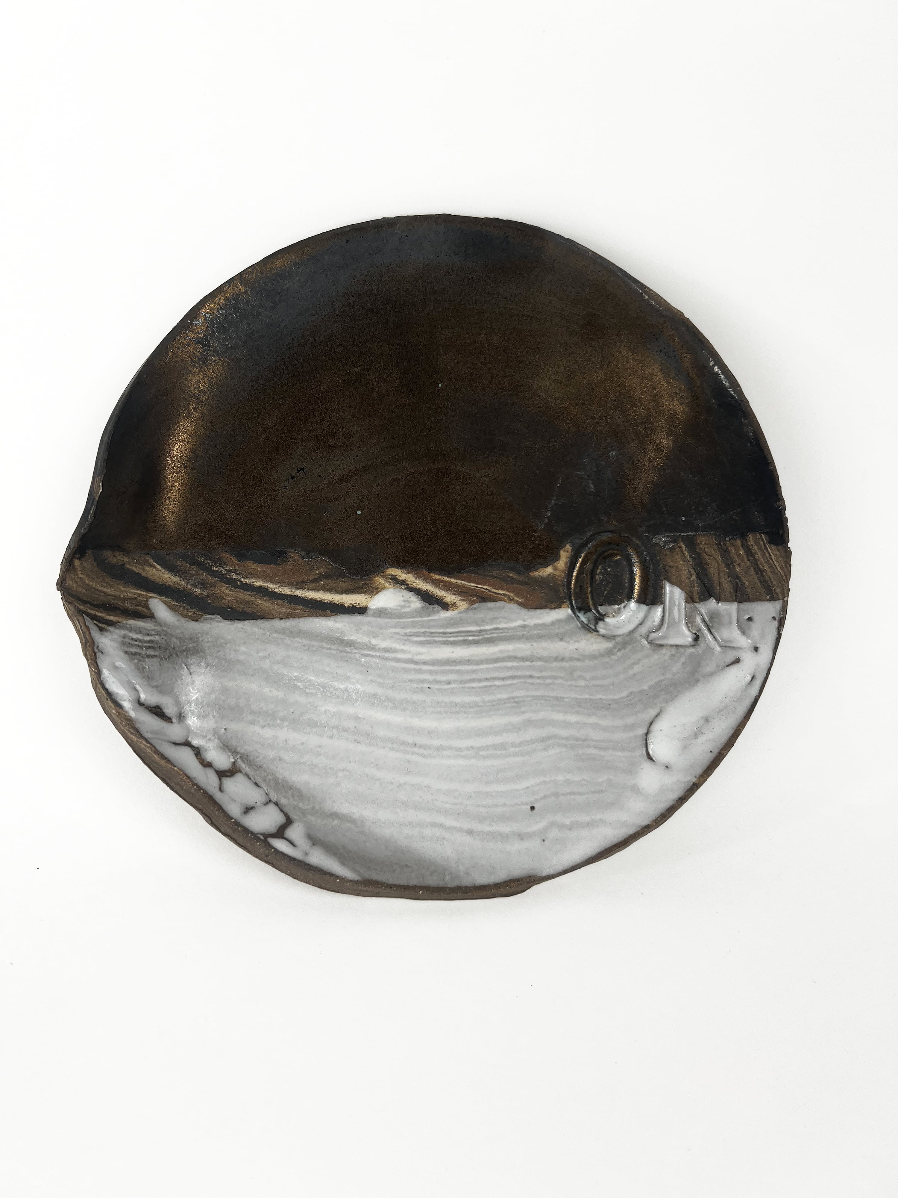 n.3 Piatti modellati a mano in grés porcellanato marmorizzato.